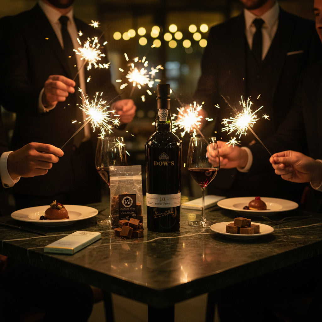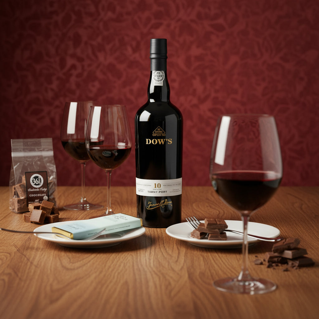 Warm, polished and beautifully composed, the Dow’s 10 Year Old Tawny Port Gift Box is a classic after-dinner indulgence with real finesse. Crafted by the renowned Symington family and aged for a decade in seasoned oak, this Tawny captures Dow’s signature drier style—balancing bright fruit, nutty complexity and gentle spice with a silky finish. Paired with artisanal Bennetts milk chocolate and hand-crafted 36 Degrees South chocolate fudge, it’s a superb gift for winter evenings, milestone celebrations, or anyone who appreciates refined sweetness with structure.